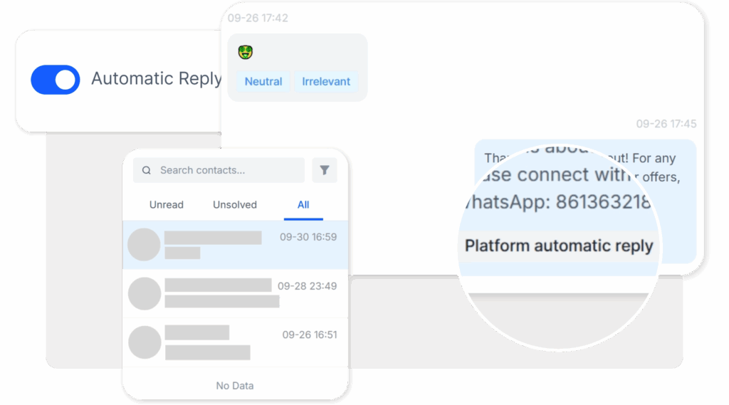 Operators can define rules for different scenarios: automatically replying to FAQs, directing users to private chat, or escalating complex cases to human agents. And all automated responses operate through the official Facebook API, fully compliant with platform policies and ensuring account security.